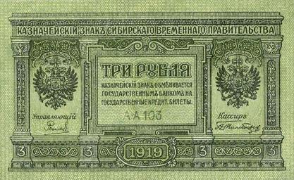 | Keywords: 3 rub Kolchak.jpg п авительством Колчака аве с И кутский областной к аеведческий музей Российское п авительство 1919 PD-Old-70 currency Banknotes of Siberian Provisional Government Green banknotes Banknotes with a face value of 3 Banknotes of Russia 1919 |