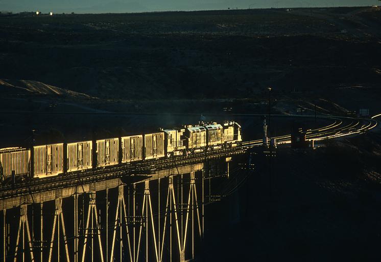 | Keywords: santa fe santafe architecture bridge skyline outdoor night building structure water building infrastructure city These are 5 of Roger Puta's photographs of 3 Santa Fe freights crossing the Colorado River bridge and the Arizona-California border at Topock, AZ in February 1984. The sun was up producing a great glint on the eastbound second train. Telephoto lens shot. These are 5 of Roger Puta's photographs of 3 Santa Fe freights crossing the Colorado River bridge and the Arizona-California border at Topock, AZ in February 1984. The sun was up producing a great glint on the eastbound second train. Telephoto lens shot. These are 5 of Roger Puta's photographs of 3 Santa Fe freights crossing the Colorado River bridge and the Arizona-California border at Topock, AZ in February 1984.
