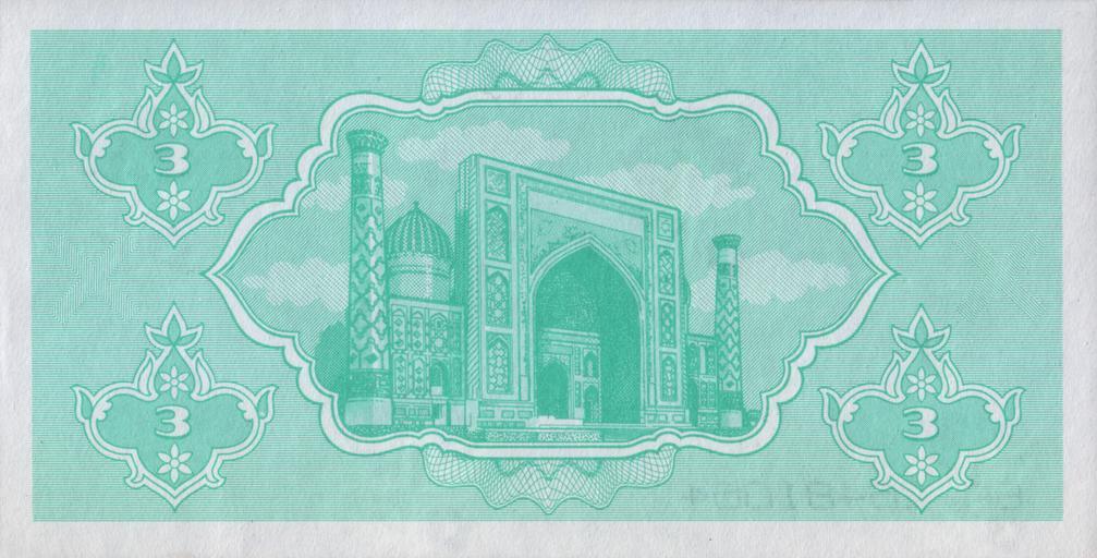 Keywords: 3 som. Uzbekistan, 1992 b.jpg 3 сум Узбекистана 1992 3 sum of Uzbekistan 1992 own scan 1992 Central Bank of the Republic of Uzbekistan Цент альный банк Республики Узбекистан Ўзбекистон Республикаси а казий банки PD-UZ-exempt banknotes Banknotes of Uzbekistan 1992 Banknotes with a face value of 3 Green banknotes |