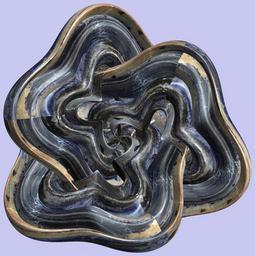 | Keywords: mathematica 3d cg parametricplot3d texture torus code program algorithm プログラム コード アルゴリズム 輪環 りんかん ドーナツ どーなつ トーラス とーらす mapping テクスチャ マッピング 模様 もよう abstract 抽象 ちゅうしょう アブストラクト design pattern デザイン パターン graphic グラフィック グラフィクス structure 意匠 構造 symmetry 対称性 たいしょうせい シンメトリー 対称 たいしょう drawing door architecture white background surreal a = 5; (* center hole size of a torus *) b1 = 4;(* the number of angles *) b2 = 4;(* the number of waves *) c = 2; (* distance from the center of rotation *) d = 3; (* the number of tori *) h1 = 3; (* width of a torus *) h2 = 1; (* width of a torus *) SetOptions[ParametricPlot3D, PlotRange -> Full, Mesh -> None, Boxed -> False, Axes -> None, PlotPoints -> 500, ImageSize -> 3000, Background -> RGBColor[{200, 200, 240}/255], PlotStyle -> Directive[Specularity[White, 70], Texture[Import["D:/tmp/94.jpg"]]], TextureCoordinateFunction -> ({#4, #5 Pi} &), Lighting -> "Neutral"]; f[v_] := Sin[2 Sin[Sin[Sin[v]]]]; x = (a - h1 Cos[t] + h2 f[b1 s]) Cos[s] + c; y = (a - h1 Cos[t] + h2 f[b1 s]) Sin[s] + c; z = f[b2 t]; rm = Table[{x, y, z}.RotationMatrix[2 i Pi/d, {0, 1, 2}], {i, d}]; ParametricPlot3D[rm, {t, 0, 2 Pi}, {s, 0, 2 Pi}] (*--- The Texture *) a = 5; (* center hole size of a torus *) b1 = 4;(* the number of angles *) b2 = 4;(* the number of waves *) c = 2; (* distance from the center of rotation *) d = 3; (* the number of tori *) h1 = 3; (* width of a torus *) h2 = 1; (* width of a torus *) SetOptions[ParametricPlot3D, PlotRange -> Full, Mesh -> None, Boxed -> False, Axes -> None, PlotPoints -> 500, ImageSize -> 3000, Background -> RGBColor[{200, 200, 240}/255], PlotStyle -> Directive[Specularity[White, 70], Texture[Import["D:/tmp/94.jpg"]]], TextureCoordinateFunction -> ({#4, #5 Pi} &), Lighting -> "Neutral"]; f[v_] := Sin[2 Sin[Sin[Sin[v]]]]; x = (a - h1 Cos[t] + h2 f[b1 s]) Cos[s] + c; y = (a - h1 Cos[t] + h2 f[b1 s]) Sin[s] + c; z = f[b2 t]; rm = Table[{x, y, z}.RotationMatrix[2 i Pi/d, {0, 1, 2}], {i, d}]; ParametricPlot3D[rm, {t, 0, 2 Pi}, {s, 0, 2 Pi}] (*--- The Texture *) |
