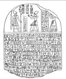 | Keywords: 400 Year stele Budge.png en A drawing of the famous Stele of Four Hundred Years or 400 Year stele The stele was erected in the Year 34 of Ramesses II for the worship of the god Seth of Avaris here cited as a king Opehtiset Nubti row 7 lived 400 years earlier Other kings are cited too Ramesses II top and rows 1 3 4; Seti I row 6 Found in Tanis 2014-01-18 09 33 42 A History of Egypt vol III 1902 https //archive org/details/ahistoryegyptfr01budggoog available not-in-copyright here p 157 E A Wallis Budge 1857-1934 PD-old-auto-1923 1934 Uploaded with UploadWizard Seth Reliefs of Ramses II Drawings of Ramses II Steles of the 19th dynasty of Egypt Avaris Ancient Egyptian art from Tanis PD US files by Khruner E A Wallis Budge |