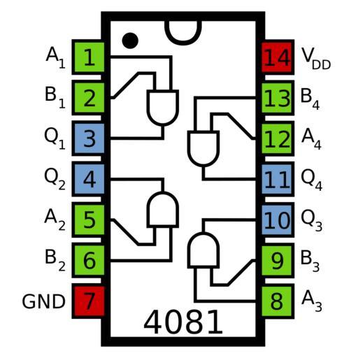 Keywords: 4081 Pinout.svg Pinout Diagram of a 4081 Quad AND Gate IC Own drawing Inkscape 0 43 12/07/06 inductiveload PD IC pinout diagrams