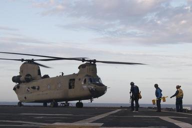 | Keywords: 40th cab 40thcab 40th combat aviation brigade 40thcombataviationbrigade ch-47 chinook ch47chinook chinook helicopter deck landing qualification decklandingqualification dlq deck landing decklanding uss ponce ussponce afsb afloat forward staging base afloatforwardstagingbase aviation pilot army soldier california army national guard californiaarmynationalguard 1-168 avn 1168avn washington national guard washingtonnationalguard oregon national guard oregonnationalguard persian gulf persiangulf vehicle outdoor aircraft rotor blade airplane An Army National Guard Ch-47 Chinook helicopter from Company B, 1st Battalion, 168th Aviation Regiment, 40th Combat Aviation Brigade, lands aboard the USS Ponce, an Afloat Forward Staging Base, in the Persian Gulf March 14. The 40th CAB practices landings aboard Naval vessels every month. (U.S. Army photo by Staff Sgt. Ian M. Kummer) An Army National Guard Ch-47 Chinook helicopter from Company B, 1st Battalion, 168th Aviation Regiment, 40th Combat Aviation Brigade, lands aboard the USS Ponce, an Afloat Forward Staging Base, in the Persian Gulf March 14. The 40th CAB practices landings aboard Naval vessels every month. (U.S. Army photo by Staff Sgt. Ian M. Kummer) |