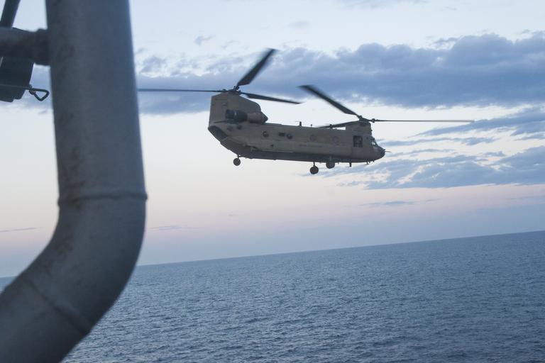 Keywords: 40th cab 40thcab 40th combat aviation brigade 40thcombataviationbrigade ch-47 chinook ch47chinook chinook helicopter deck landing qualification decklandingqualification dlq deck landing decklanding uss ponce ussponce afsb afloat forward staging base afloatforwardstagingbase aviation pilot army soldier california army national guard californiaarmynationalguard 1-168 avn 1168avn washington national guard washingtonnationalguard oregon national guard oregonnationalguard persian gulf persiangulf outdoor An Army National Guard Ch-47 Chinook helicopter from Company B, 1st Battalion, 168th Aviation Regiment, 40th Combat Aviation Brigade, takes off from the USS Ponce, an Afloat Forward Staging Base, in the Persian Gulf March 14. The 40th CAB practices landings aboard Naval vessels every month. (U.S. Army photo by Staff Sgt. Ian M. Kummer) An Army National Guard Ch-47 Chinook helicopter from Company B, 1st Battalion, 168th Aviation Regiment, 40th Combat Aviation Brigade, takes off from the USS Ponce, an Afloat Forward Staging Base, in the Persian Gulf March 14. The 40th CAB practices landings aboard Naval vessels every month. (U.S. Army photo by Staff Sgt. Ian M. Kummer)