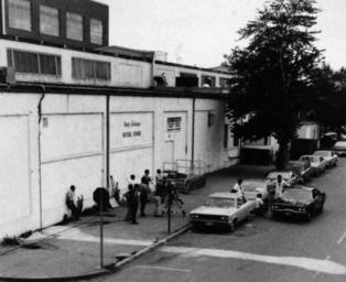 | Keywords: blackandwhite monochrome outdoor black and white 428-GX-KN-21003: Washington, D.C. The Naval Photographic Center Television Unit sets up its equipment to film some action at the Washington Navy Yard Exchange Store for a television show. Photographed by Pat Cady, July 1973. U.S. Navy Photograph, now in the collections of the National Archives. Black and white photograph. (2016/02/02). Note, photographed from reference card 428-GX-KN-21003: Washington, D.C. The Naval Photographic Center Television Unit sets up its equipment to film some action at the Washington Navy Yard Exchange Store for a television show. Photographed by Pat Cady, July 1973. U.S. Navy Photograph, now in the collections of the National Archives. Black and white photograph. (2016/02/02). Note, photographed from reference card |
