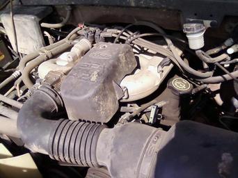 | Keywords: 42LV6 front left.jpg en Front view of a 4 2 liter V6 Ford engine in a 1998 F-150 Shows the upper intake throttle body air intake coil pack clutch reservoir AC compressor pulley fan and primary battery fuse block own Shadow460 2009-05-09 Ford automobile engines |