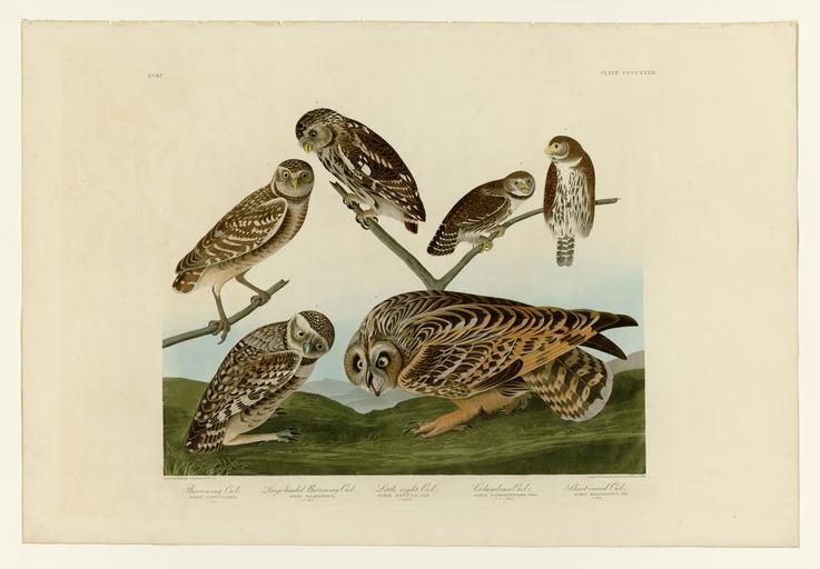 Keywords: 432 I. Burrowing Owl - 2. Large-headed Burrowing Owl - 3. Little night Owl - 4. Columbian Owl - 5. Short-eared Owl.jpg LargeImage 431_American_Flamingo jpg 433_I _Bullock's_Oriole_-_2 _Baltimore_Oriole_-_3 _Mexican_Goldfinch_-_4 _Varied_Thrush_-_5 _Common_Water_Thrush jpg Plate 432 of Birds of America by John James Audubon depicting I Burrowing Owl - Large-headed Burrowing Owl - Little night Owl - Columbian Owl - Short-eared Owl http //images library pitt edu/cgi-bin/i/image/image-idx view entry;cc audimg;entryid x-aud0432 University of Pittsburgh 1827-1838 creator John James Audubon PD-old-100 The Birds of America |