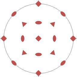 | Keywords: 432 point group.png en Stereographic representation of the symmetry point group 432 The 001 direction is perpendicular to the projection plane The rotation axes are represented in red The thin black ticks show the direction of the equivalent crystallographic axes a and b fr Représentation stéréographique du groupe ponctuel de symétrie 432 La direction 001 est perpendiculaire au plan de projection Les axes de rotation sont représentés en rouge Les trait fins noirs montrent la direction des axes cristallographiques équivalents a et b own Perditax 2011-06-06 Cc-zero Point groups |