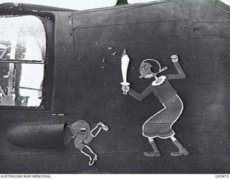 | Keywords: 467 Squadron RAAF A for Apple Waddington Aug 1943 AWM UK0473.jpg AWM caption LINCOLNSHIRE ENGLAND 1943-08-31 THE EMBLEM OF A FOR APPLE A LANCASTER AIRCRAFT OF NO 467 SQUADRON RAAF OF BOMBER COMMAND BASED AT RAF STATION WADDINGTON AND CAPTAINED BY PILOT OFFICER D J SULLIVAN GERALDTON WA UK0473 1943-08-31 not stated Copyright expired - public domain PD-AustraliaGov Nose art on Avro Lancaster No 467 Squadron RAAF RAF Waddington Avro Lancaster in Australian service | ||||
