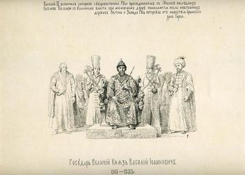 | Keywords: 46 History of the Russian state in the image of its sovereign rulers.jpg ru Госуда ь Великий Князь Василий Иоаннович 1505-1533 г <br>Василий III закончил соби ание севе овосточной Руси п исоединением к оскве оследних уделов В связи с усилением власти п и московском дво е появляются послы иност анных де жав Востока и Запада Русь поте пела от нашествия к ымского хана Ги ея full 39 History of the Russian state in the image of its sovereign rulers - fragment jpg Vasily III of Russia in engravings |