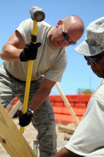 | Keywords: 474th Expeditionary Civil Engineering Squadron Construction DVIDS297418.jpg en Air Force Master Sgt Edward Davenport the 474th Expeditionary Civil Engineering Squadron ™s structural supervisor uses a sledgehammer to set a metal rod to hold a beam in place for a vehicle checkpoint structure July 6 The 474th ECES supports Joint Task Force Guantanamo by maintaining the Expeditionary Legal Complex and Camp Justice facilities and infrastructure JTF Guantanamo conducts safe humane legal and transparent care and custody of detainees including those convicted by military commission and those ordered released by a court The JTF conducts intelligence collection analysis and dissemination for the protection of detainees and personnel working in JTF Guantanamo facilities and in support of the War on Terror JTF Guantanamo provides support to the Office of Military Commissions to law enforcement and to war crimes investigations The JTF conducts planning for and on order responds to Caribbean mass migration operations 2010-07-06 Petty Officer 3rd Class Joshua Nistas https //www dvidshub net/image/297418 100706-N-+++++-141 2010-07-08 15 20 GUANTANAMO BAY CU PD-USGov-Military-Navy Joint Task Force Guantanamo Guantanamo Bay Images from DoD uploaded by Fæ |