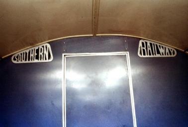 | Keywords: 487-DM-Southern-Railway-logo.jpg The internal air vents at the carriage ends on the Class 487 Waterloo City Line driving motor carriages featured a 'Southern Railway' logo whilst on the trailers the logo was 'Southern Region' Photographed by SP Smiler 2007-01-04 own assumed Spsmiler Train interiors of British Rail Class 487s |