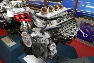 | Keywords: 4983 cc Holden 5000 (special performance) V8 engine (2015-08-29) 03.jpg 4983 cc w Holden V8 engine Holden 5000 special performance V8 engine Photographed at the National Holden Motor Museum Echuca Victoria Australia <br /> ;Specifications Bore 101 6 mm in on Stroke 76 8 mm in on Compression 8 4 1 Power 180 kW hp on at 5200 rpm Torque 380 Nm lbft on at 4000 rpm ;Features Ram tuned inlet manifold with High volumetric efficiency in the upper speed range Inserted bell mouthed ram tubes Large volume plenum chamber Dual throttle bodies Primary 64 mm in on diameter Secondary large 80 mm in on diameter for unrestricted air flow Four-bolt main bearing caps Cylinder block internal stiffening ribs Low inertia flywheel Multi-point fuel injection High-rise increased flow inlet port Free-flow reduced length exhaust ports Centralised spark plug reduction Electronic ignition 2015-08-29 own OSX -36 120176 144 74529 OSX Photographs by OSX Holden V8 engine National Holden Motor Museum |