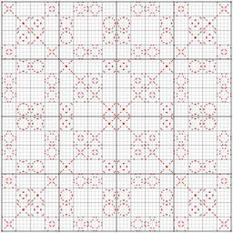 | Keywords: 4-ary Boolean functions; matrix wec E0.svg Walsh equivalence class E0 of 4-ary Boolean functions<br> The functions are represented as red squares in a 256×256 matrix organized like a 16-cube Hasse diagram Inkscape-hand a -Boolean Bin2svg own 2012 Mate2code 4-ary Boolean functions; matrix wec |