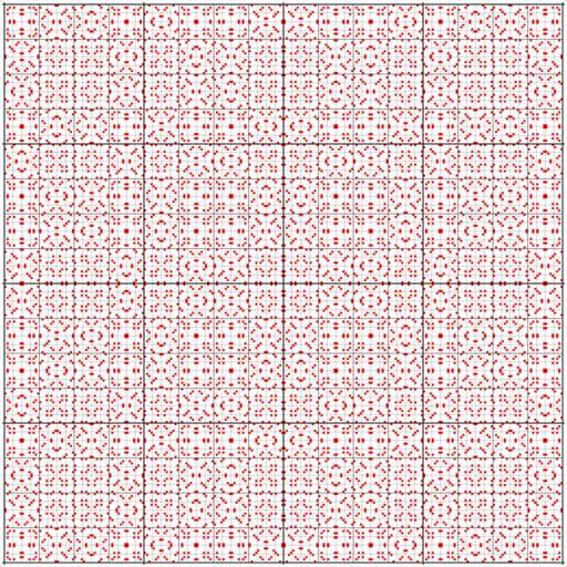 | Keywords: 4-ary Boolean functions; matrix wec E3.svg Walsh equivalence class E3 of 4-ary Boolean functions<br> The functions are represented as red squares in a 256×256 matrix organized like a 16-cube Hasse diagram Inkscape-hand a -Boolean Bin2svg own 2012 Mate2code 4-ary Boolean functions; matrix wec |