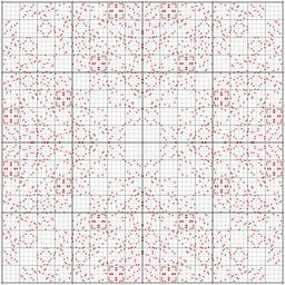 | Keywords: 4-ary Boolean functions; matrix ggbec 282.svg One of 39 ggbec<nowiki>s</nowiki> of 4-ary Boolean functions<br> The functions are represented as red squares in a 256×256 matrix organized like a 16-cube Hasse diagram Inkscape-hand a -Boolean Bin2svg own 2012 Lipedia 4-ary Boolean functions; matrix ggbec |