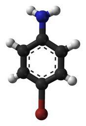 MAKE A MEME View Large Image 4-bromoaniline-from-xtal-2003-3D-balls.png Ball-and-stick model of the 4-bromoaniline molecule C<sub>6</sub>H<sub>6</sub>BrN from the crystal structure Colour code Carbon C black Hydrogen H white Nitrogen N blue Bromine Br brown Crystal ...