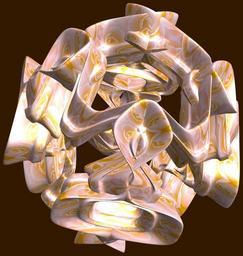 | Keywords: mathematica 3d cg parametricplot3d texture torus 輪環 りんかん ドーナツ どーなつ 六芒星 ろくぼうせい 六光星 ろくこうせい 六稜星 ろくりょうせい code program algorithm コード プログラム アルゴリズム hexagram geometric sculpture geometricsculpture shape geometry sculpture mapping テクスチャ マッピング 模様 もよう abstract 抽象 ちゅうしょう アブストラクト design pattern デザイン パターン graphic グラフィック グラフィクス structure 意匠 構造 symmetry 対称性 たいしょうせい シンメトリー 対称 たいしょう algorithm コード black background indoor photo border a = 4; (* center hole size of a torus *) b = 6; (* hexa-torus *) c = -7; (* distance from the center of rotation *) d = 4; (* number of torus *) h = 1; (* height of a torus *) SetOptions[ParametricPlot3D, PlotRange -> Full, Mesh -> None, Boxed -> False, Axes -> False, PlotPoints -> 400, ImageSize -> 3000, Background -> Darker[Orange, 0.8], PlotStyle -> Directive[Specularity[White, 30], Texture[Import["D:/tmp/861.jpg"]]], TextureCoordinateFunction -> ({#4, #5 2 Pi} &), Lighting -> "Neutral"]; f[v_] := Sin[2 Sin[Sin[Sin[v]]]]; g[v_] := Sum[Cos[(2 k - 1) v]/(2 k - 1), {k, 4}]; x = (a - g[t] - f[b s]) Cos[s + Pi/b]; y = (a - g[t] - f[b s]) Sin[s + Pi/b]; z = (a - Sin[t] - h f[b s]) + c; rot = Table[{x, y, z}.RotationMatrix[2 i Pi/d, {1, 1, 0}], {i, d}]; ParametricPlot3D[rot, {t, 0, 2 Pi}, {s, 0, 2 Pi}] (*--- The Texture *) a = 4; (* center hole size of a torus *) b = 6; (* hexa-torus *) c = -7; (* distance from the center of rotation *) d = 4; (* number of torus *) h = 1; (* height of a torus *) SetOptions[ParametricPlot3D, PlotRange -> Full, Mesh -> None, Boxed -> False, Axes -> False, PlotPoints -> 400, ImageSize -> 3000, Background -> Darker[Orange, 0.8], PlotStyle -> Directive[Specularity[White, 30], Texture[Import["D:/tmp/861.jpg"]]], TextureCoordinateFunction -> ({#4, #5 2 Pi} &), Lighting -> "Neutral"]; f[v_] := Sin[2 Sin[Sin[Sin[v]]]]; g[v_] := Sum[Cos[(2 k - 1) v]/(2 k - 1), {k, 4}]; x = (a - g[t] - f[b s]) Cos[s + Pi/b]; y = (a - g[t] - f[b s]) Sin[s + Pi/b]; z = (a - Sin[t] - h f[b s]) + c; rot = Table[{x, y, z}.RotationMatrix[2 i Pi/d, {1, 1, 0}], {i, d}]; ParametricPlot3D[rot, {t, 0, 2 Pi}, {s, 0, 2 Pi}] (*--- The Texture *) |