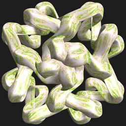 | Keywords: mathematica 3d cg parametricplot3d texture torus 輪環 りんかん ドーナツ どーなつ 六芒星 ろくぼうせい 六光星 ろくこうせい 六稜星 ろくりょうせい code program algorithm コード プログラム アルゴリズム hexagram geometric sculpture geometricsculpture shape geometry sculpture mapping テクスチャ マッピング 模様 もよう abstract 抽象 ちゅうしょう アブストラクト design pattern デザイン パターン graphic グラフィック グラフィクス structure 意匠 構造 symmetry 対称性 たいしょうせい シンメトリー 対称 たいしょう algorithm コード black background indoor flower food plant a = 7; (* center hole size of a torus *) b = 6; (* hexa-torus *) c = 4; (* distance from the center of rotation *) d = 4; (* number of torus *) h = 2; (* height of a torus *) SetOptions[ParametricPlot3D, PlotRange -> Full, Mesh -> None, Boxed -> False, Axes -> False, PlotPoints -> 300, ImageSize -> 3000, Background -> RGBColor[{30, 30, 30}/255], PlotStyle -> Directive[Specularity[White, 70], Texture[Import["D:/tmp/864.jpg"]]], TextureCoordinateFunction -> ({#4, #5 2 Pi} &), Lighting -> "Neutral"]; f[v_] := Sin[2 Sin[Sin[Sin[v]]]]; x = (a - Cos[t] - Sin[b s]) Cos[s + Pi/(2 b)]; y = (a - Cos[t] - Sin[b s]) Sin[s + Pi/(2 b)]; z = (f[t] - h f[b s]) + c; rm = Table[{x, y, z}.RotationMatrix[2 i Pi/d, {1, 1, 1}], {i, d}]; ParametricPlot3D[rm, {t, 0, 2 Pi}, {s, 0, 2 Pi}] (*--- The Texture *) a = 7; (* center hole size of a torus *) b = 6; (* hexa-torus *) c = 4; (* distance from the center of rotation *) d = 4; (* number of torus *) h = 2; (* height of a torus *) SetOptions[ParametricPlot3D, PlotRange -> Full, Mesh -> None, Boxed -> False, Axes -> False, PlotPoints -> 300, ImageSize -> 3000, Background -> RGBColor[{30, 30, 30}/255], PlotStyle -> Directive[Specularity[White, 70], Texture[Import["D:/tmp/864.jpg"]]], TextureCoordinateFunction -> ({#4, #5 2 Pi} &), Lighting -> "Neutral"]; f[v_] := Sin[2 Sin[Sin[Sin[v]]]]; x = (a - Cos[t] - Sin[b s]) Cos[s + Pi/(2 b)]; y = (a - Cos[t] - Sin[b s]) Sin[s + Pi/(2 b)]; z = (f[t] - h f[b s]) + c; rm = Table[{x, y, z}.RotationMatrix[2 i Pi/d, {1, 1, 1}], {i, d}]; ParametricPlot3D[rm, {t, 0, 2 Pi}, {s, 0, 2 Pi}] (*--- The Texture *) |