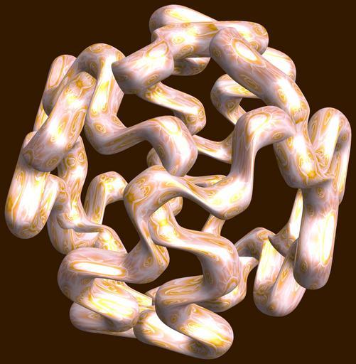Keywords: mathematica 3d cg parametricplot3d texture torus 輪環 りんかん ドーナツ どーなつ 八芒星 はちぼうせい 八光星 はちこうせい 八稜星 はちりょうせい code program algorithm コード プログラム アルゴリズム geometric sculpture geometricsculpture shape geometry sculpture mapping テクスチャ マッピング 模様 もよう abstract 抽象 ちゅうしょう アブストラクト design pattern デザイン パターン graphic グラフィック グラフィクス structure 意匠 構造 symmetry 対称性 たいしょうせい シンメトリー 対称 たいしょう algorithm コード black background indoor food a = 8; (* center hole size of a torus *) b = 8; (* octa-torus *) c = -12; (* distance from the center of rotation *) d = 4; (* number of torus *) h = 1; (* height of a torus *) SetOptions[ParametricPlot3D, PlotRange -> Full, Mesh -> None, Boxed -> False, Axes -> False, PlotPoints -> 400, ImageSize -> 3000, Background -> Darker[Orange, 0.8], PlotStyle -> Directive[Specularity[White, 30], Texture[Import["D:/tmp/861.jpg"]]], TextureCoordinateFunction -> ({#4, #5 2 Pi} &), Lighting -> "Neutral"]; f[v_] := Sin[2 Sin[Sin[Sin[v]]]]; x = (a - Cos[t] - f[b s]) Cos[s + Pi/b]; y = (a - Cos[t] - f[b s]) Sin[s + Pi/b]; z = (a - Sin[t] - h f[b s]) + c; rm = Table[{x, y, z}.RotationMatrix[2 i Pi/d, {1, 1, 0}], {i, d}]; ParametricPlot3D[rm, {t, 0, 2 Pi}, {s, 0, 2 Pi}] (*--- The Texture *) a = 8; (* center hole size of a torus *) b = 8; (* octa-torus *) c = -12; (* distance from the center of rotation *) d = 4; (* number of torus *) h = 1; (* height of a torus *) SetOptions[ParametricPlot3D, PlotRange -> Full, Mesh -> None, Boxed -> False, Axes -> False, PlotPoints -> 400, ImageSize -> 3000, Background -> Darker[Orange, 0.8], PlotStyle -> Directive[Specularity[White, 30], Texture[Import["D:/tmp/861.jpg"]]], TextureCoordinateFunction -> ({#4, #5 2 Pi} &), Lighting -> "Neutral"]; f[v_] := Sin[2 Sin[Sin[Sin[v]]]]; x = (a - Cos[t] - f[b s]) Cos[s + Pi/b]; y = (a - Cos[t] - f[b s]) Sin[s + Pi/b]; z = (a - Sin[t] - h f[b s]) + c; rm = Table[{x, y, z}.RotationMatrix[2 i Pi/d, {1, 1, 0}], {i, d}]; ParametricPlot3D[rm, {t, 0, 2 Pi}, {s, 0, 2 Pi}] (*--- The Texture *) |