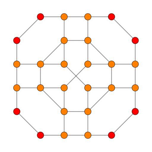 Keywords: 4-demicube t012 D3.svg en 4-demicube family polytopes in D4/D3 en Coxeter plane symmetry own 11/20/10 User Tomruen Truncated 24-cell; Coxeter plane graphs Set of colored Coxeter plane graphs; 28 vertices