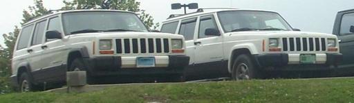Keywords: 4-Door Jeep Cherokees.JPG Jeep Cherokees photographed in Williston Vermont USA Own 07/13/08 Bull-Doser All Rights Released Jeep Cherokee XJ White Jeep SUVs