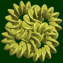 | Keywords: mathematica 3d cg parametricplot3d texture torus knot 輪環 りんかん ドーナツ どーなつ 結び むすび 捩れ よじれ プログラム コード code program algorithm コード アルゴリズム geometric sculpture geometricsculpture shape geometry sculpture mapping テクスチャ マッピング 模様 もよう abstract 抽象 ちゅうしょう アブストラクト design pattern デザイン パターン graphic グラフィック グラフィクス structure 意匠 構造 symmetry 対称性 たいしょうせい シンメトリー 対称 たいしょう algorithm organic pattern macro plant blossom foliage SetOptions[ParametricPlot3D, PlotRange -> Full, Mesh -> None, Boxed -> False, Axes -> None, PlotPoints -> 300, ImageSize -> 3000, Background -> Darker[Green, 0.8], PlotStyle -> Directive[Specularity[White, 90], Texture[Import["D:/tmp/71.jpg"]]], TextureCoordinateFunction -> ({#4, #5 b Pi} &), Lighting -> "Neutral"]; a = 4; (* center hole size of a torus *) b = 15; (* number of cross *) c = 3; (* distance from the center of rotation *) d = 4; (* number of torus *) x = (a - Cos[t] + Sin[b s]) Cos[2 s] + c; y = (a - Cos[t] + Sin[b s]) Sin[2 s] + c; z = Cos[b s] + Sin[t] + c; rot = Table[{x, y, z}.RotationMatrix[2 i Pi/d, {0, 1, 3}], {i, d}]; ParametricPlot3D[rot, {t, 0, 2 Pi}, {s, 0, 2 Pi}] (* --- The Texture is this: www.flickr.com/photos/tanaka_juuyoh/5239255695/ *) SetOptions[ParametricPlot3D, PlotRange -> Full, Mesh -> None, Boxed -> False, Axes -> None, PlotPoints -> 300, ImageSize -> 3000, Background -> Darker[Green, 0.8], PlotStyle -> Directive[Specularity[White, 90], Texture[Import["D:/tmp/71.jpg"]]], TextureCoordinateFunction -> ({#4, #5 b Pi} &), Lighting -> "Neutral"]; a = 4; (* center hole size of a torus *) b = 15; (* number of cross *) c = 3; (* distance from the center of rotation *) d = 4; (* number of torus *) x = (a - Cos[t] + Sin[b s]) Cos[2 s] + c; y = (a - Cos[t] + Sin[b s]) Sin[2 s] + c; z = Cos[b s] + Sin[t] + c; rot = Table[{x, y, z}.RotationMatrix[2 i Pi/d, {0, 1, 3}], {i, d}]; ParametricPlot3D[rot, {t, 0, 2 Pi}, {s, 0, 2 Pi}] (* --- The Texture is this: www.flickr.com/photos/tanaka_juuyoh/5239255695/ *) |