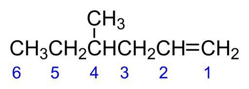 Keywords: 4-Methylhex-1-ene with number.svg en 4-Methylhex-1-ene with carbon numbering own Calvero 2009-11-25 Chemical structures to explain nomenclature