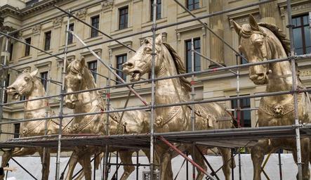Keywords: 4 Pferde.jpg de Die 4 Pferde der Braunschweiger Quadriga vor dem Aufbau auf das Braunschweiger Schloss own JeromeVA 2008-10-18 Brunonia allegory Quadriga of Brunswick Brunswick Palace