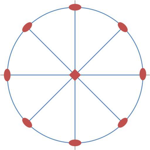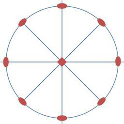 | Keywords: 4mmm point group.png en Stereographic représentation of the symmetry point group 4/mmm The 001 direction is perpendicular to the projection plane The mirror planes are represented in blue the rotation axes in red The thin black ticks show the direction of the equivalent crystallographic axes a and b fr Représentation stéréographique du groupe ponctuel de symétrie 4/mmm La direction 001 est perpendiculaire au plan de projection Les plans miroirs sont représentés en bleu les axes de rotation en rouge Les trait fins noirs montrent la direction des axes cristallographiques équivalents a et b own Perditax 2011-06-05 Cc-zero Point groups |