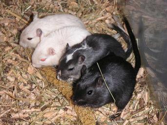 | Keywords: 4rennmaeuse.jpg Autor C Roller - Vier Mongolische Rennmäuse mit unterschiedlichen Fellfarben von oben n ut saphier altweiß anthrazit schwarz Four Mongolian Gerbils with different color coats 2005-01-23 own assumed Mausmac Meriones unguiculatus Colorpoint animals |