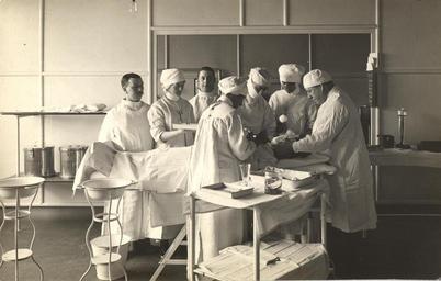 | Keywords: hospital king george military hospital kinggeorgemilitaryhospital postcards national library of medicine nationallibraryofmedicine indoor monochrome Contributor(s): Zwerdling, Michael, former owner Publication: [England] : [publisher not identified], [1915] Language(s): English Format: Still image Subject(s): Hospitals, Military Operating Rooms Physicians King George Military Hospital. Genre(s): Postcards Abstract: Black and white photograph of surgeons and nurses tending to a patient on an operating table at King George Military Hospital, London, England. Extent: 1 postcard : 9 x 14 cm Provenance: Purchase ; Michael Zwerdling ; 2004 ; 04-22. Technique: black and white NLM Unique ID: 101614627 NLM Image ID: D05817 Permanent Link: resource.nlm.nih.gov/101614627 Contributor(s): Zwerdling, Michael, former owner Publication: [England] : [publisher not identified], [1915] Language(s): English Format: Still image Subject(s): Hospitals, Military Operating Rooms Physicians King George Military Hospital. Genre(s): Postcards Abstract: Black and white photograph of surgeons and nurses tending to a patient on an operating table at King George Military Hospital, London, England. Extent: 1 postcard : 9 x 14 cm Provenance: Purchase ; Michael Zwerdling ; 2004 ; 04-22. Technique: black and white NLM Unique ID: 101614627 NLM Image ID: D05817 Permanent Link: resource.nlm.nih.gov/101614627 |