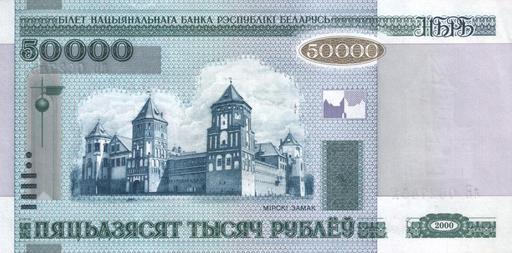 | Keywords: 50000-rubles-Belarus-2010-f.jpg 50 000 ублей Бело уссии 2010 50 000 roubles of Belarus 2010 own scan 2010 National Bank of Republic of Belarus ациональный банк Республики Бела усь ацыянальны Банк Рэспублiкi Бела усь PD-BY-exempt banknotes Banknotes of Belarus 2000 Banknotes with a face value of 50000 Blue banknotes Castles on banknotes |