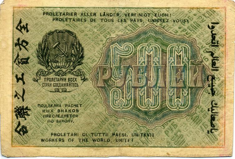 Keywords: 500-rouble note of Russia 1919 - back.jpg 'Sovznaki' of Soviet Russia 500 roubles Back « ru Изоб ажения Совзнаки» Советской России 500 ублей Обо отная сто она Self-made scan of own note Scanned on 2009 printed in 1919 Scanned by Boud printed by Soviet Russia PD-RU-exempt banknotes PD-old Banknotes of the Soviet Russia 1919 Banknotes with a face value of 500 Green banknotes |