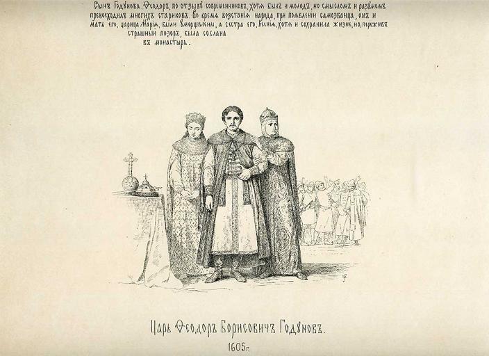 | Keywords: 50 History of the Russian state in the image of its sovereign rulers.jpg ru Ца ь Феодо Бо исович Годунов 1605 г <br>Сын Годунова Феодо по отзыву сов еменников хотя был и молод но смыслом и азумом п евосходил многих ста иков Во в емя восстания на ода п и появлении самозванца он и мать его ца ица а ия были уме щвлены а сест а его Ксения хотя и сох анила жизнь но пе ежив ст ашный позо была сослана в монасты ь full 50 History of the Russian state in the image of its sovereign rulers - fragment jpg Feodor II of Russia |