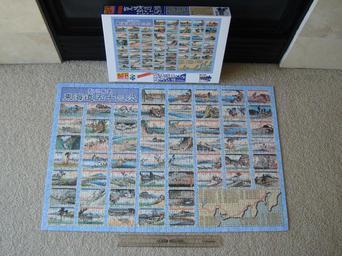 | Keywords: text indoor collection Epoch (Japan) 1000 Fifty-three stations of the Tokaido; recent trophy photo; great art, but 1000 piece scale reduces it too much; an easy puzzle because most of the pieces include parts of the blue grid, and the numbering of the frame labels is easy to work out even though I don't read Japanese Epoch (Japan) 1000 Fifty-three stations of the Tokaido; recent trophy photo; great art, but 1000 piece scale reduces it too much; an easy puzzle because most of the pieces include parts of the blue grid, and the numbering of the frame labels is easy to work out even though I don't read Japanese |