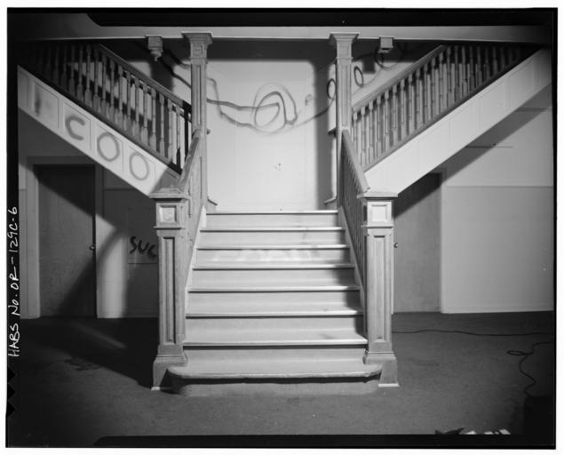 | Keywords: 5495 Chugath Street McBride Hall - first floor stair - Chemawa Indian School - Salem Oregon.jpg en Chemawa Indian School McBride Hall 5495 Chugach Street Northeast Salem Marion County OR CALL NUMBER HABS ORE 24-SAL 1C- NOTE Survey number HABS OR-129-C DIGID http //hdl loc gov/loc pnp/hhh or0042 CONTROL OR0042 LOC card text 5495 Chugach St N E Red brick on concrete foundations with wooden and stone trim rectangular with center and end projections 114' sixteen-bay front x 35' two-and-a-half stories hip and gable roofs with pedimented gable ends and gable dormers denticulated cornice three-bay hip-roof entrance porch with wooden railing double doors with fanlight segmental arched window heads with stone sills brick belt course at sill level of each floor; dormitory main stair with classical details Built 1902; alterations to interior n d ; demolished 1978 4 ext photos 1977 6 int photos 1977 Also see Chemawa Indian School OR-129 Card prepared 1979 Library of Congress Steve Viale 1977-10 OR-129-C Historic American Buildings Survey photographs of the Chemawa Indian School Building interiors in Oregon 1977 Staircases in the United States 1977 in Oregon School Black and white photographs of Oregon School |