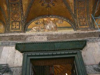 Keywords: 572IstanbulSSofia.JPG it Istanbul - Mosaico della Porta Reale nella Basilica di S Sofia own MarkusMark 2009-04 Hagia Sophia Istanbul - Imperial Gate mosaic