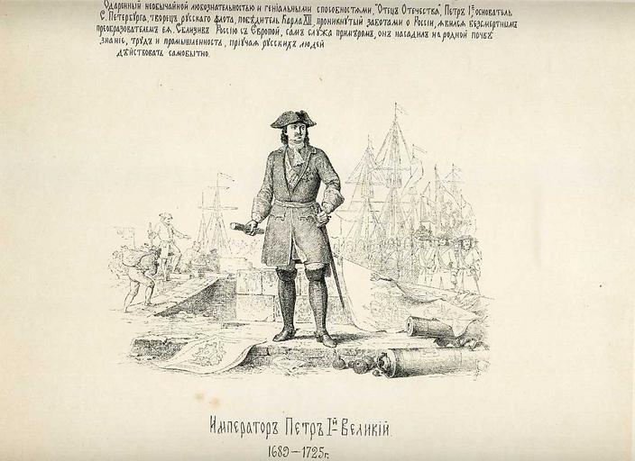 | Keywords: 58 History of the Russian state in the image of its sovereign rulers.jpg ru Импе ато Пет I Великий 1689-1725 г <br>Ода енный необычайной любознательностью и гениальными способностями Отец Отечества Пет I-й основатель С Пете бу га тво ец усского флота победитель Ка ла XII п оникнутый заботами о России явился бессме тным п еоб азователемеё Сблизив Россию с Ев оппой сам служа п име ом он насадил на одной почве знание т уд и п омышленность п иучая усских людей действовать самобытно full 58 History of the Russian state in the image of its sovereign rulers - fragment jpg Peter I of Russia in art |
