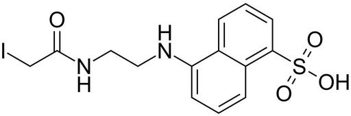 | Keywords: 5-((2-(2-iodoacetamido)ethyl)amino)naphthalene-1-sulfonic acid 200.svg validSVG Structure of 5- 2- 2-iodoacetamido ethyl amino naphthalene-1-sulfonic acid Own 2014-04-19 Emeldir <span class signature-talk >talk</span> Chemical structure verified https //upload wikimedia org/wikipedia/commons/3/31/5- 28 282- 282-iodoacetamido 29ethyl 29amino 29naphthalene-1-sulfonic_acid_200 svg 1S/C14H15IN2O4S/c15-9-14 18 17-8-7-16-12-5-1-4-11-10 12 3-2-6-13 11 22 19 20 21/h1-6 16H 7-9H2 H 17 18 H 19 20 21 ZMERMCRYYFRELX-UHFFFAOYSA-N 36930-63-9 Synonyms <small>1 5 IAEDANS 1 5-IEDANS 5- 2-Iodoacetyl amino ethyl amino naphthalene-1-sulfonic acid 5- 2- 2-Iodoacetamido ethylamino -1-naphthalenesulfonic acid 5-2- Iodoacetamido ethylaminonaphthalene-1-sulfonic acid Hudson-Weber reagent N- Iodoacetaminoethyl -1-naphthylamine-5'-sulfonic acid N- Iodoacetaminoethyl -1-naphthylamine-5-sulfonic acid N- Iodoacetylaminoethyl -5-naphthylamine-1-sulfonic acid N-Iodoacetyl-N'- 5-sulfo-1-naphthyl ethylenediamine N-Iodoacetyl-N- 5-sulfo-1-naphthyl ethylenediamine</small> PD-chem Naphthalene sulfonic acids Naphthylamines N-substituted primary amides Fluorescent dyes Organoiodides |