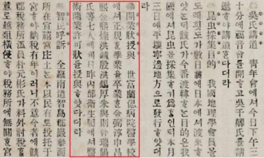 Keywords: 박서양, 신창희 외 5명 의사면허 수여 보도.jpg 박 양 신창 외 5명에게 사면허 수여를 보도 기사 세 世富蘭偲 병원 학교에셔 정 학업 졸업 필 신창 영 홍종 홍 후 주현측 박 양 씨 등 7 에게 작 日昨 내 국에셔 술 업허 장 수여하얏다 http //www pressian com/article/article asp article_num 50101216080334 토 결탁 에비슨 7人 사 탄 비 1908-06-07 author PD-old People of Korea Joseon Dynasty PD-old-100 |