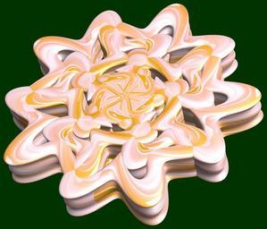 | Keywords: mathematica 3d cg parametricplot3d texture torus 輪環 りんかん ドーナツ どーなつ 六芒星 ろくぼうせい 六光星 ろくこうせい 六稜星 ろくりょうせい program プログラム code コード algorithm コード アルゴリズム hexagram geometric sculpture geometricsculpture shape geometry sculpture mapping テクスチャ マッピング 模様 もよう design pattern デザイン パターン graphic グラフィック グラフィクス structure 意匠 構造 symmetry 対称性 たいしょうせい シンメトリー 対称 たいしょう algorithm black background pastel SetOptions[ParametricPlot3D, PlotRange -> Full, Mesh -> None, Boxed -> False, Axes -> None, PlotPoints -> 400, ImageSize -> 3000, Background -> Darker[Green, 0.8], PlotStyle -> Directive[Specularity[White, 30], Texture[Import["D:/tmp/861.jpg"]]], TextureCoordinateFunction -> ({#4 + #5, #5/Pi} &), Lighting -> "Neutral"]; a = 3; (* center hole size of a torus *) b = 6; (* hexa-torus *) c = 2; (* distance from the center of rotation *) d = 5; (* number of torus *) g[v_] := Sum[(-1)^(k + 1) Cos[(2 k - 1) v]/(2 k - 1), {k, 3}]; x = (a - g[t] - Sin[b s]) Cos[s + Pi/(2 b)] + c; y = Sin[t] + c; z = (a - g[t] - Sin[b s]) Sin[s + Pi/(2 b)] + c; rot = Table[{x, y, z}.RotationMatrix[2 i Pi/d, {0, 1, 0}], {i, d}]; ParametricPlot3D[rot, {t, 0, 2 Pi}, {s, 0, 2 Pi}] (*--- The Texture The g[] is a 3-partial sum of the Fourier series for Square wave. g[]は矩形波のフーリエ展開の最初の3項 *) SetOptions[ParametricPlot3D, PlotRange -> Full, Mesh -> None, Boxed -> False, Axes -> None, PlotPoints -> 400, ImageSize -> 3000, Background -> Darker[Green, 0.8], PlotStyle -> Directive[Specularity[White, 30], Texture[Import["D:/tmp/861.jpg"]]], TextureCoordinateFunction -> ({#4 + #5, #5/Pi} &), Lighting -> "Neutral"]; a = 3; (* center hole size of a torus *) b = 6; (* hexa-torus *) c = 2; (* distance from the center of rotation *) d = 5; (* number of torus *) g[v_] := Sum[(-1)^(k + 1) Cos[(2 k - 1) v]/(2 k - 1), {k, 3}]; x = (a - g[t] - Sin[b s]) Cos[s + Pi/(2 b)] + c; y = Sin[t] + c; z = (a - g[t] - Sin[b s]) Sin[s + Pi/(2 b)] + c; rot = Table[{x, y, z}.RotationMatrix[2 i Pi/d, {0, 1, 0}], {i, d}]; ParametricPlot3D[rot, {t, 0, 2 Pi}, {s, 0, 2 Pi}] (*--- The Texture The g[] is a 3-partial sum of the Fourier series for Square wave. g[]は矩形波のフーリエ展開の最初の3項 *) |