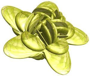 | Keywords: mathematica 3d cg parametricplot3d texture torus 輪環 りんかん ドーナツ どーなつ 八芒星 はちぼうせい program プログラム code コード algorithm コード アルゴリズム geometric sculpture geometricsculpture shape geometry sculpture mapping テクスチャ マッピング 模様 もよう design pattern デザイン パターン graphic グラフィック グラフィクス structure 意匠 構造 symmetry 対称性 たいしょうせい シンメトリー 対称 たいしょう algorithm white background indoor a = 0; (* center hole size of a torus *) b = 8; (* octa-torus *) c = 0.5; (* distance from the center of rotation *) d = 5; (* number of torus *) SetOptions[ParametricPlot3D, PlotRange -> Full, Mesh -> None, Boxed -> False, Axes -> None, PlotPoints -> 400, ImageSize -> 3000, PlotStyle -> Directive[Specularity[White, 30], Texture[Import["D:/tmp/71.jpg"]]], TextureCoordinateFunction -> ({#4, #5 b Pi} &), Lighting -> "Neutral"]; g[v_] := Sum[Cos[(2 k - 1) v]/(2 k - 1), {k, 4}]; x = (a - Cos[t] - Sin[b s]) g[s + Pi/(2 b)] + c; y = Sin[t] + c; z = (a - Cos[t] - Sin[b s]) Sin[s + Pi/(2 b)] + c; rot = Table[{x, y, z}.RotationMatrix[2 i Pi/d, {0, 0, 1}], {i, d}]; ParametricPlot3D[rot, {t, 0, 2 Pi}, {s, 0, 2 Pi}] (*--- The Texture The g[] is a 4-partial sum of the Fourier series for Square wave. g[]は矩形波のフーリエ展開の最初の4項 *) a = 0; (* center hole size of a torus *) b = 8; (* octa-torus *) c = 0.5; (* distance from the center of rotation *) d = 5; (* number of torus *) SetOptions[ParametricPlot3D, PlotRange -> Full, Mesh -> None, Boxed -> False, Axes -> None, PlotPoints -> 400, ImageSize -> 3000, PlotStyle -> Directive[Specularity[White, 30], Texture[Import["D:/tmp/71.jpg"]]], TextureCoordinateFunction -> ({#4, #5 b Pi} &), Lighting -> "Neutral"]; g[v_] := Sum[Cos[(2 k - 1) v]/(2 k - 1), {k, 4}]; x = (a - Cos[t] - Sin[b s]) g[s + Pi/(2 b)] + c; y = Sin[t] + c; z = (a - Cos[t] - Sin[b s]) Sin[s + Pi/(2 b)] + c; rot = Table[{x, y, z}.RotationMatrix[2 i Pi/d, {0, 0, 1}], {i, d}]; ParametricPlot3D[rot, {t, 0, 2 Pi}, {s, 0, 2 Pi}] (*--- The Texture The g[] is a 4-partial sum of the Fourier series for Square wave. g[]は矩形波のフーリエ展開の最初の4項 *) |