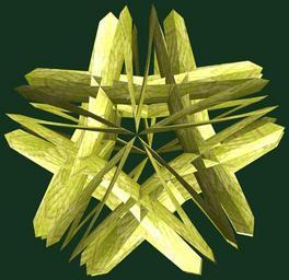 | Keywords: mathematica 3d cg parametricplot3d texture torus code program algorithm プログラム コード アルゴリズム 輪環 りんかん ドーナツ どーなつ 八芒星 はちぼうせい geometric sculpture geometricsculpture shape geometry sculpture mapping テクスチャ マッピング 模様 もよう abstract 抽象 ちゅうしょう アブストラクト design pattern デザイン パターン graphic グラフィック グラフィクス structure 意匠 構造 symmetry 対称性 たいしょうせい シンメトリー 対称 たいしょう organic pattern black background outdoor serene a = 4; (* center hole size *) b = 8; (* octa-torus *) c = -10; (* distance from the center of rotation *) d = 5; (* number of torus *) h = 5; (* height of a torus *) SetOptions[ParametricPlot3D, PlotRange -> Full, Mesh -> None, Boxed -> False, Axes -> False, PlotPoints -> 400, ImageSize -> 3000, Background -> RGBColor[{20, 50, 30}/255], PlotStyle -> Directive[Specularity[White, 30], Texture[Import["D:/tmp/71.jpg"]]], TextureCoordinateFunction -> ({#4, #5 Pi} &), Lighting -> "Neutral"]; f[v_] := TriangleWave[{-1, 1}, v/(2 Pi)]; g[v_] := TriangleWave[{-1, 1}, v/(2 Pi) + 1/4]; x = (a - g[t] - f[b s]) Cos[s + Pi/(2 b)]; y = (a - g[t] - f[b s]) Sin[s + Pi/(2 b)]; z = (a - f[t] - h f[b s]) + c; rm = Table[{x, y, z}.RotationMatrix[2 i Pi/d, {1, 1, 0}], {i, d}]; ParametricPlot3D[rm, {t, 0, 2 Pi}, {s, 0, Pi}] (*--- The Texture *) a = 4; (* center hole size *) b = 8; (* octa-torus *) c = -10; (* distance from the center of rotation *) d = 5; (* number of torus *) h = 5; (* height of a torus *) SetOptions[ParametricPlot3D, PlotRange -> Full, Mesh -> None, Boxed -> False, Axes -> False, PlotPoints -> 400, ImageSize -> 3000, Background -> RGBColor[{20, 50, 30}/255], PlotStyle -> Directive[Specularity[White, 30], Texture[Import["D:/tmp/71.jpg"]]], TextureCoordinateFunction -> ({#4, #5 Pi} &), Lighting -> "Neutral"]; f[v_] := TriangleWave[{-1, 1}, v/(2 Pi)]; g[v_] := TriangleWave[{-1, 1}, v/(2 Pi) + 1/4]; x = (a - g[t] - f[b s]) Cos[s + Pi/(2 b)]; y = (a - g[t] - f[b s]) Sin[s + Pi/(2 b)]; z = (a - f[t] - h f[b s]) + c; rm = Table[{x, y, z}.RotationMatrix[2 i Pi/d, {1, 1, 0}], {i, d}]; ParametricPlot3D[rm, {t, 0, 2 Pi}, {s, 0, Pi}] (*--- The Texture *) |