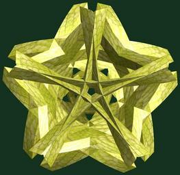 | Keywords: mathematica 3d cg parametricplot3d texture torus code program algorithm プログラム コード アルゴリズム 輪環 りんかん ドーナツ どーなつ 五芒星 ごぼうせい geometric sculpture geometricsculpture shape geometry sculpture mapping テクスチャ マッピング 模様 もよう abstract 抽象 ちゅうしょう アブストラクト design pattern デザイン パターン graphic グラフィック グラフィクス structure 意匠 構造 symmetry 対称性 たいしょうせい シンメトリー 対称 たいしょう leaf plant foliage organic pattern black background tree outdoor forest landscape a = 5; (* center hole size *) b = 5; (* penta-torus *) c = -3; (* distance from the center of rotation *) d = 5; (* number of torus *) h = 4; (* height of a torus *) SetOptions[ParametricPlot3D, PlotRange -> Full, Mesh -> None, Boxed -> False, Axes -> False, PlotPoints -> 400, ImageSize -> 3000, Background -> RGBColor[{20, 50, 30}/255], PlotStyle -> Directive[Specularity[White, 30], Texture[Import["D:/tmp/71.jpg"]]], TextureCoordinateFunction -> ({#4, #5 Pi} &), Lighting -> "Neutral"]; f[v_] := TriangleWave[{-1, 1}, v/(2 Pi)]; g[v_] := TriangleWave[{-1, 1}, v/(2 Pi) + 1/4]; x = (a - g[t] - f[b s]) Cos[s + 3 Pi/(4 b)]; y = (a - g[t] - f[b s]) Sin[s + 3 Pi/(4 b)]; z = (a - f[t] - h f[b s]) + c; rm = Table[{x, y, z}.RotationMatrix[2 i Pi/d, {1, 1, 0}], {i, d}]; ParametricPlot3D[rm, {t, 0, 2 Pi}, {s, 0, Pi}] (*--- The Texture *) a = 5; (* center hole size *) b = 5; (* penta-torus *) c = -3; (* distance from the center of rotation *) d = 5; (* number of torus *) h = 4; (* height of a torus *) SetOptions[ParametricPlot3D, PlotRange -> Full, Mesh -> None, Boxed -> False, Axes -> False, PlotPoints -> 400, ImageSize -> 3000, Background -> RGBColor[{20, 50, 30}/255], PlotStyle -> Directive[Specularity[White, 30], Texture[Import["D:/tmp/71.jpg"]]], TextureCoordinateFunction -> ({#4, #5 Pi} &), Lighting -> "Neutral"]; f[v_] := TriangleWave[{-1, 1}, v/(2 Pi)]; g[v_] := TriangleWave[{-1, 1}, v/(2 Pi) + 1/4]; x = (a - g[t] - f[b s]) Cos[s + 3 Pi/(4 b)]; y = (a - g[t] - f[b s]) Sin[s + 3 Pi/(4 b)]; z = (a - f[t] - h f[b s]) + c; rm = Table[{x, y, z}.RotationMatrix[2 i Pi/d, {1, 1, 0}], {i, d}]; ParametricPlot3D[rm, {t, 0, 2 Pi}, {s, 0, Pi}] (*--- The Texture *) |