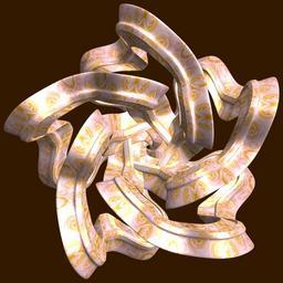| Keywords: mathematica 3d cg parametricplot3d texture torus 輪環 りんかん ドーナツ どーなつ 四芒星 しぼうせい 四光星 しこうせい 四稜星 しりょうせい code program algorithm コード プログラム アルゴリズム geometric sculpture geometricsculpture shape geometry sculpture mapping テクスチャ マッピング 模様 もよう abstract 抽象 ちゅうしょう アブストラクト design pattern デザイン パターン graphic グラフィック グラフィクス structure 意匠 構造 symmetry 対称性 たいしょうせい シンメトリー 対称 たいしょう algorithm コード black background indoor food a = 5; (* center hole size of a torus *) b = 4; (* tetra-torus *) c = 5; (* distance from the center of rotation *) d = 5; (* number of torus *) h = 1; (* height of a torus *) SetOptions[ParametricPlot3D, PlotRange -> Full, Mesh -> None, Boxed -> False, Axes -> False, PlotPoints -> 400, ImageSize -> 3000, Background -> Darker[Orange, 0.8], PlotStyle -> Directive[Specularity[White, 30], Texture[Import["D:/tmp/861.jpg"]]], TextureCoordinateFunction -> ({#4, #5 2 Pi} &), Lighting -> "Neutral"]; f[v_] := Sin[2 Sin[Sin[Sin[v]]]]; g[v_] := Sum[Cos[(2 k - 1) v]/(2 k - 1), {k, 4}]; x = (a - g[t] - f[b s]) Cos[s + 3 Pi/(4 b)] + c; y = (a - g[t] - f[b s]) Sin[s + 3 Pi/(4 b)] + 2 c; z = (a - Sin[t] - h f[b s]); rot = Table[{x, y, z}.RotationMatrix[2 i Pi/d, {1, 1, 1}], {i, d}]; ParametricPlot3D[rot, {t, 0, 2 Pi}, {s, 0, 2 Pi}] (*--- The Texture *) a = 5; (* center hole size of a torus *) b = 4; (* tetra-torus *) c = 5; (* distance from the center of rotation *) d = 5; (* number of torus *) h = 1; (* height of a torus *) SetOptions[ParametricPlot3D, PlotRange -> Full, Mesh -> None, Boxed -> False, Axes -> False, PlotPoints -> 400, ImageSize -> 3000, Background -> Darker[Orange, 0.8], PlotStyle -> Directive[Specularity[White, 30], Texture[Import["D:/tmp/861.jpg"]]], TextureCoordinateFunction -> ({#4, #5 2 Pi} &), Lighting -> "Neutral"]; f[v_] := Sin[2 Sin[Sin[Sin[v]]]]; g[v_] := Sum[Cos[(2 k - 1) v]/(2 k - 1), {k, 4}]; x = (a - g[t] - f[b s]) Cos[s + 3 Pi/(4 b)] + c; y = (a - g[t] - f[b s]) Sin[s + 3 Pi/(4 b)] + 2 c; z = (a - Sin[t] - h f[b s]); rot = Table[{x, y, z}.RotationMatrix[2 i Pi/d, {1, 1, 1}], {i, d}]; ParametricPlot3D[rot, {t, 0, 2 Pi}, {s, 0, 2 Pi}] (*--- The Texture *) |