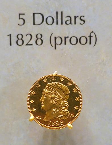 | Keywords: 5 Dollars, United States, 1828 proof - National Museum of American History - DSC00248.jpg en Exhibit in the National Museum of American History Washington DC USA Photography was permitted in the museum without restriction 2015-03-27 11 35 16 own Daderot other versions cc-zero Coins in the National Museum of American History Half Eagle United States | ||||