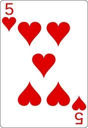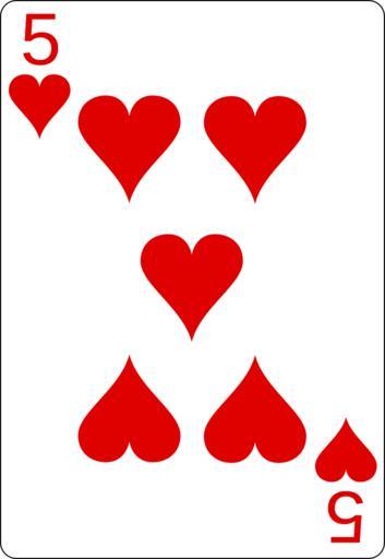 | Keywords: 5 of hearts.svg en Vector graphics poker card 2011-03 https //code google com/p/vector-playing-cards/ vector-playing-cards on Google Code Byron Knoll other versions Custom license marker 2015 01 15 Byron Knoll Playing cards set by Byron Knoll Uploaded with UploadWizard 5 of Hearts |