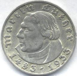 Keywords: 5 Mark Luther obverse.jpg en 5 Mark Luther obverse Coin from my collection Scan was made by me personally 2014-04-15 19 32 36 own Ibidem cc-zero Uploaded with UploadWizard Commemorative RM coins of the Third Reich 500 1933