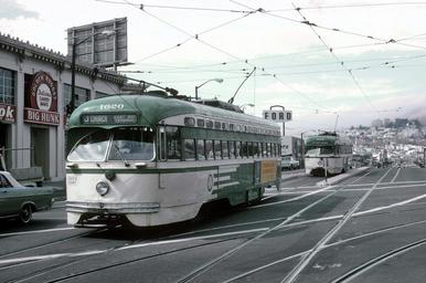 | Keywords: san francisco sanfrancisco outdoor vehicle MUNI PCC 1020, a J CHURCH EAST BAY TERMINAL car on Market St. at Duboce Ave. in San Francisco, CA on August 25, 1967. MUNI PCC 1020, a J CHURCH EAST BAY TERMINAL car on Market St. at Duboce Ave. in San Francisco, CA on August 25, 1967. |